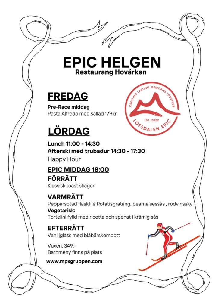 Från kl 18:00 kan Epic menyer bokas på både restaurang Hovärken och Lofsdalens Fjällhotell.